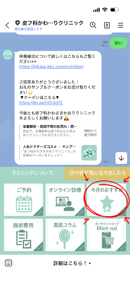 ① 公式LINEを開き「今月のおすすめ」をタップ